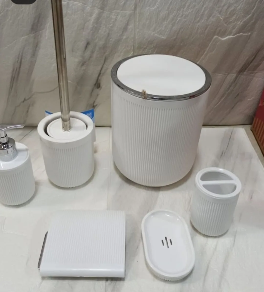 متاسفانه این کالا در حال حاضر موجود نیست. میتوانید از طریق لیست بالای صفحه، از محصولات مشابه این کالا دیدن نمایید.سرویس بهداشتی شامل سطل و فرچه جامایعی، جاصابونی و جا دستمال جامسواکی در رنگ بندی های سفید، موکا، مشکی و کرم.